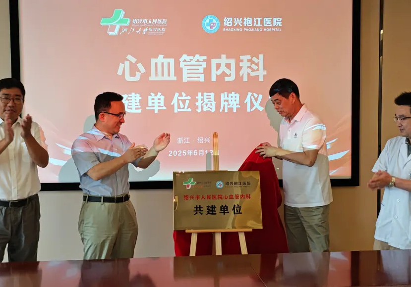2025年6月12日上午,紹興市人民醫(yī)院心血管內(nèi)科與紹興袍江醫(yī)院心血管內(nèi)科共建單位揭牌儀式在此成功舉行。這標(biāo)志著兩家醫(yī)院在心血管??祁I(lǐng)域開啟了深度協(xié)作、資源共享、共同發(fā)展的新篇章,旨在全面提升區(qū)域心血管疾病防治水平,更好地滿足人民群眾的健康需求。此次揭牌儀式由紹興市人民醫(yī)院心血管內(nèi)科常棟主任、王平主任,紹興袍江醫(yī)院董事長(zhǎng)李金生、沈文生副院長(zhǎng)、戴學(xué)海副院長(zhǎng)、黨支部書記邵薇薇、董事長(zhǎng)助理李煒、徐素文、心血管內(nèi)科郭張財(cái)副主任等專家及相關(guān)科室負(fù)責(zé)人共同出席。紹興袍江醫(yī)院董事長(zhǎng)李金生首2025-06-14